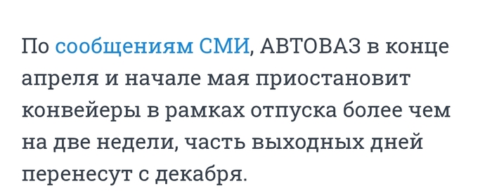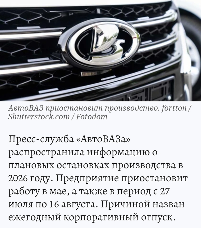 Сам автоваз объясняет это "корпоративным отпуском" и он конечно никак не связан с сотней тысяч нераспроданных авто на стоянках.