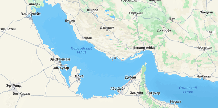 Так вот давайте представим, что арабы вместе с США решили проложить новый морской путь параллельно Ормузскому проливу. Судя по карте, этот пролив должен выглядеть примерно так, и доходить аж до Кувейта (см.фото в заголовке статьи).