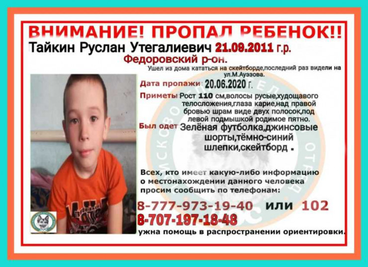 8-летнего пропавшего в Костанае ребенка нашли мертвым