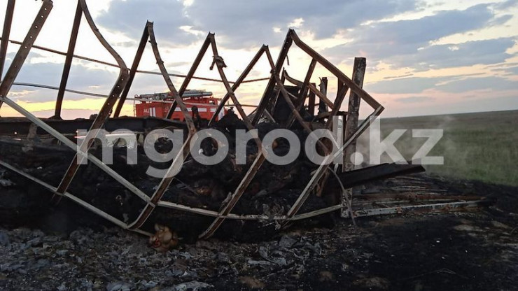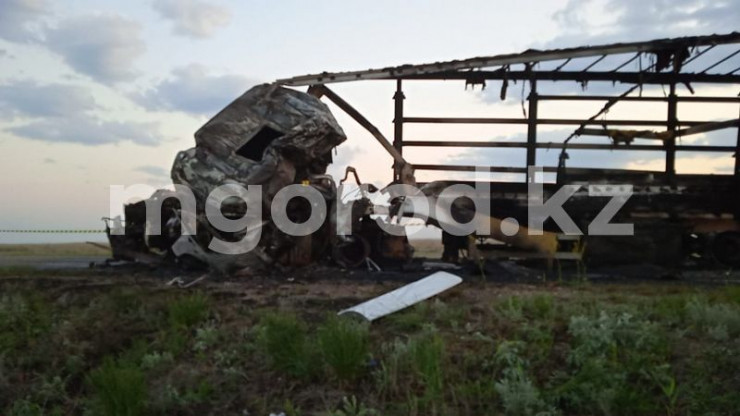 "После лобового столкновения КамАЗа с прицепом, груженным 40 лошадьми, и пустой фуры Mercedes-Benz Actros с турецкими номерами произошел пожар.  Большегрузы были полностью уничтожены огнем, сгорело 39 голов лошадей. С автомашин были извлечены два обгоревших трупа, один человек с различными травмами госпитализирован в центральную районную больницу Сырымского района. Личности пострадавших устанавливаются", - пояснили в пресс-службе ведомства.