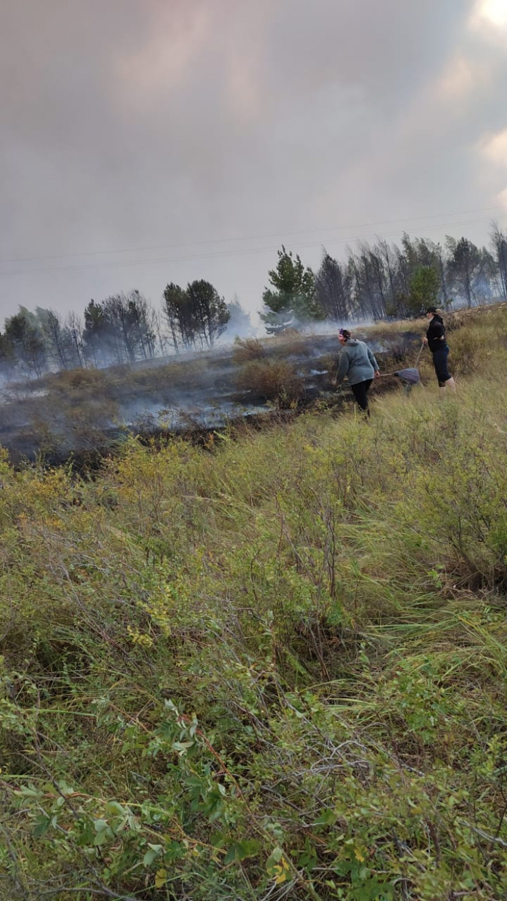 Сильный лесной пожар не утихает в Аулиекольском районе Костанайской области. Из-за этого было принято перекрыть автомобильное движение на дороге направлением Костанай - Аулиеколь - Нур-Султан. Жители близлежащих поселков рассылают по чатам сообщения о помощи. Сельчане, обеспокоенные тем, что огонь перекинется на их дома, вышли с подручными "хлопушками" (лесопожарный инструмент для тушения низовых пожаров - Прим. автора) помогать тушению пожара.