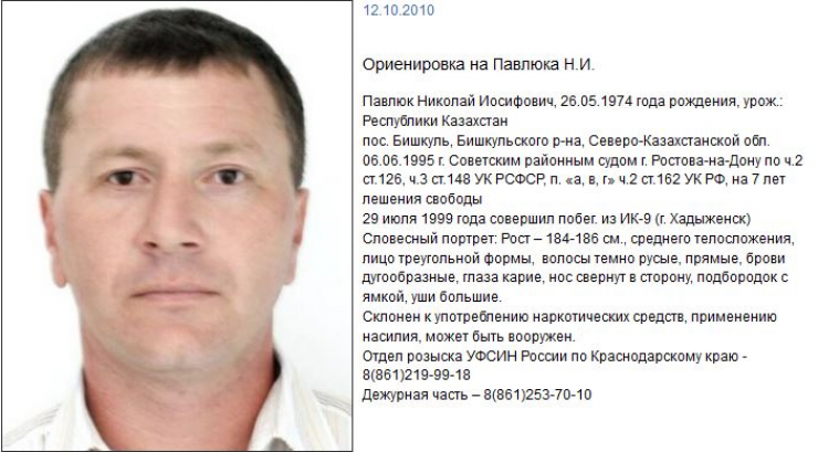 Третий сбежавший преступник - Николай Павлюк - по-прежнему находился в розыске. Сразу после побега мужчина сумел покинуть территорию России.