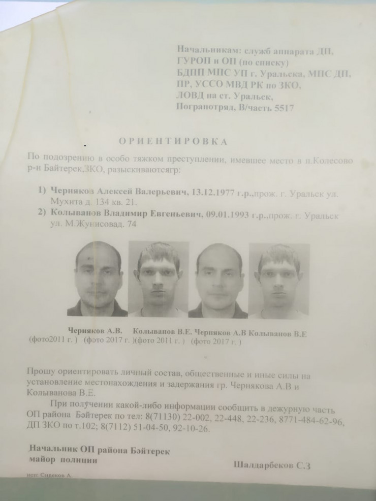 Ориентировка на подозреваемых. © uralskweek.kz