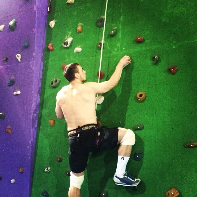 После тренировки Илья любит заниматься скалолазанием.