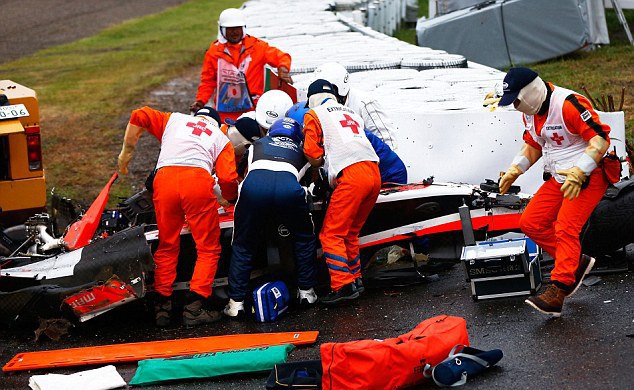 Жюль Бьянки, выступавший за англо-российскую команду Marussia, попал в серьезную аварию 5 октября 2014 года во время Гран-при Японии.