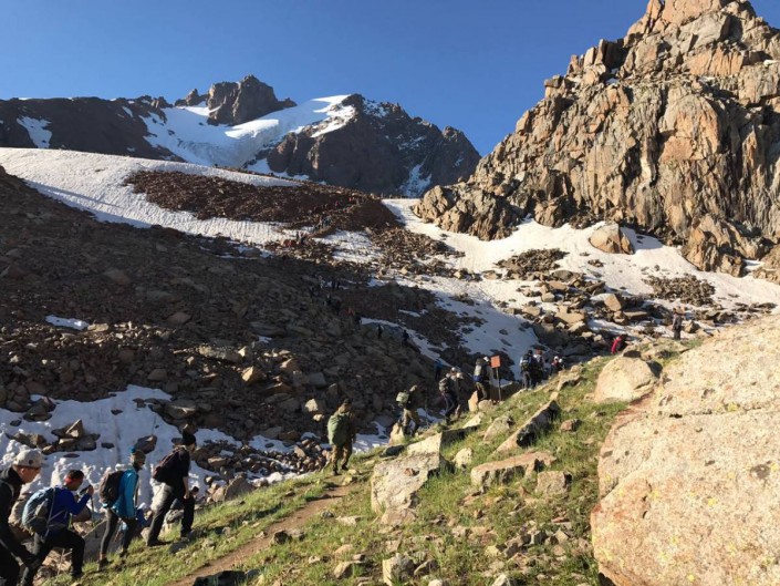 В итоге ранним утром многочисленная группа стартовала с горнолыжного курорта Шымбулак. На протяжении всего маршрута фиксированием результатов и безопасностью участников занимались силы Службы спасения акимата Алматы на Талгарском перевале (3 200 метров) и Федерации альпинизма - на самой вершине.