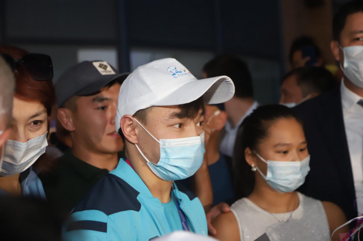 Тяжелоатлеты, бронзовые призеры Олимпиады-2020 в Токио Игорь Сон и Зульфия Чиншанло приземлились в аэропорту Алматы, передает корреспондент Tengrinews.kz.