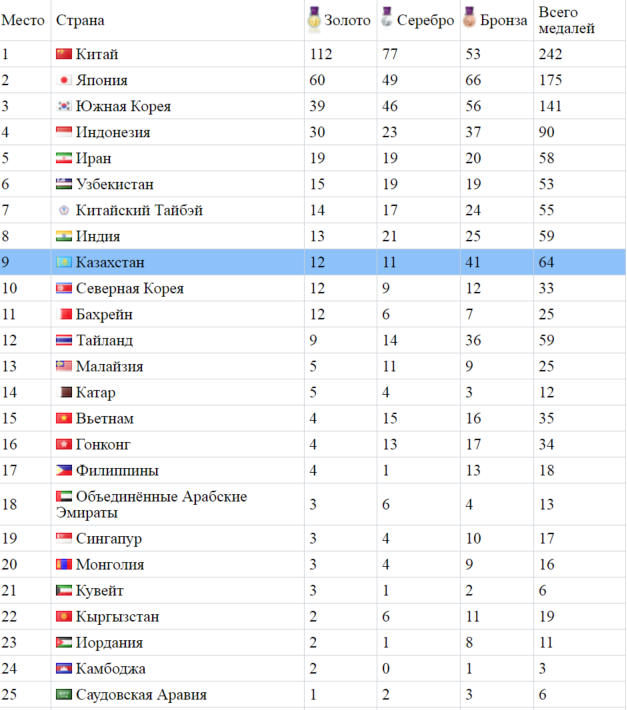 Для сборной Казахстана эта медаль стала 64-й на Азиаде-2018. Помимо 12 золотых, в активе команды 11 серебряных и 41 бронзовая награда. Благодаря этой золотой награде Казахстан поднялся на девятую строчку общекомандного медального зачета.