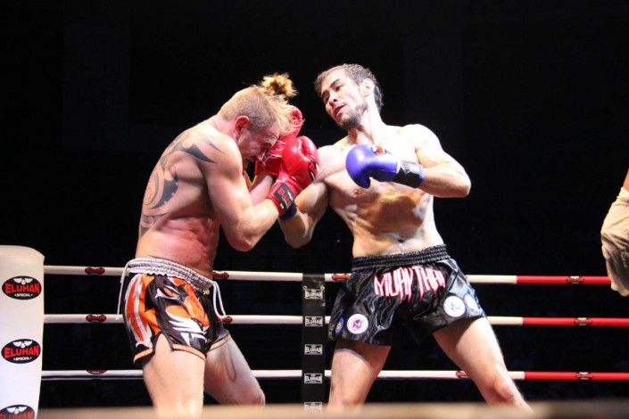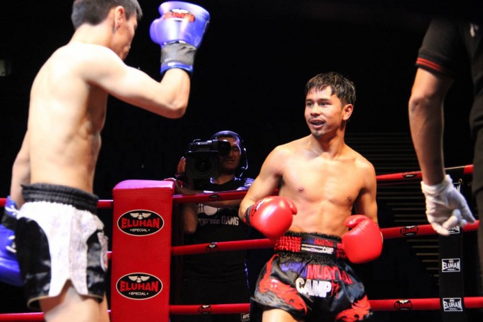 Казахстанец нокаутировал тайца с 95 победами Еламан Саясатов (справа)
