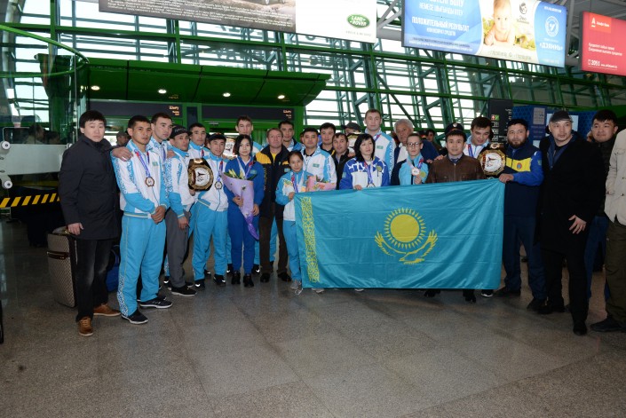 В аэропорту Астаны чествовали сотрудников правоохранительных органов, победивших на IV Чемпионате мира по рукопашному бою, сообщает корреспондент Tengrinews.kz со ссылкой на пресс-службу МВД РК.