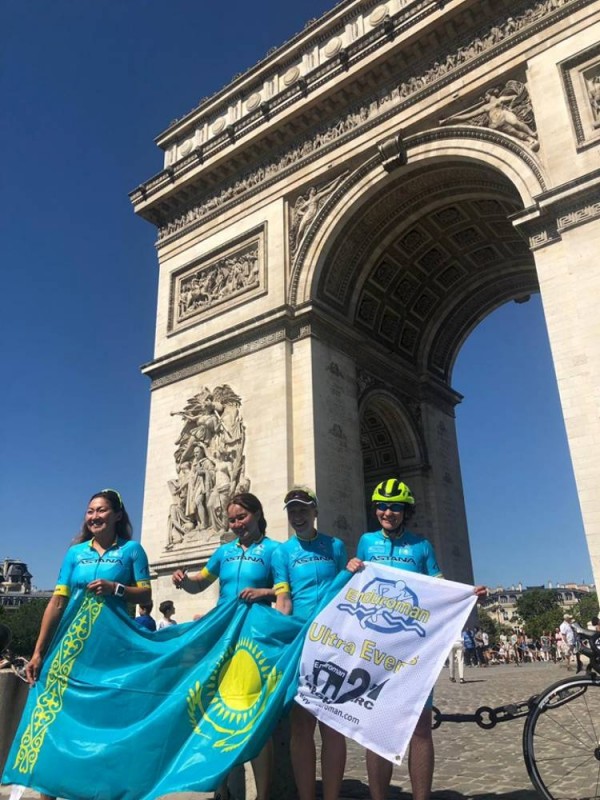 По данным Almaty triathlon federation, девушки преодолели дистанцию почти в 480 километров от Мраморной арки в Лондоне до Триумфальной арки в Париже.
