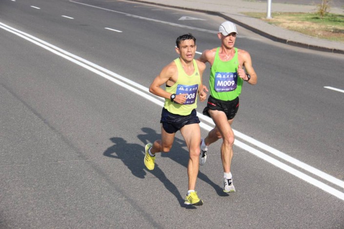Рад, что попал в число призеров, но не доволен результатом. Надеялся на два часа 20 минут. А показал два часа 33 минуты. Первые 30 километров мы все бежали рядом, лидеры. Потом спортсмены из Беларуси и Узбекистана "убежали" от нас. За ними пошел кениец. Ближе к финишу я "наелся" и уже не видел их. Погода была шикарная - с утра было прохладно, но в последние полчаса забега припекло солнце и бежать стало сложнее," - поделился Лейменов.