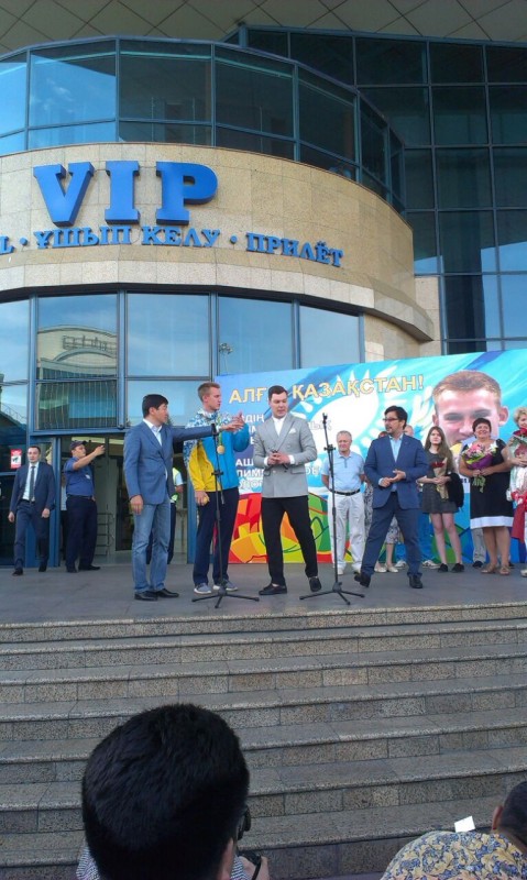 Олимпийский чемпион Дмитрий Баландин, прилетевший из Рио в Алматы, рассказал о том, что осознание победы пришло к нему не сразу, передает корреспондент Tengrinews.kz. Торжественная встреча спортсмена прошла в аэропорту Алматы.