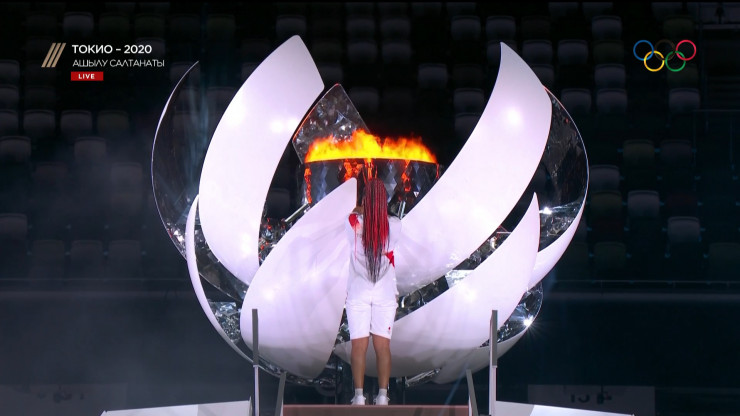 Олимпийский огонь зажгла знаменитая теннисистка Наоми Осака.