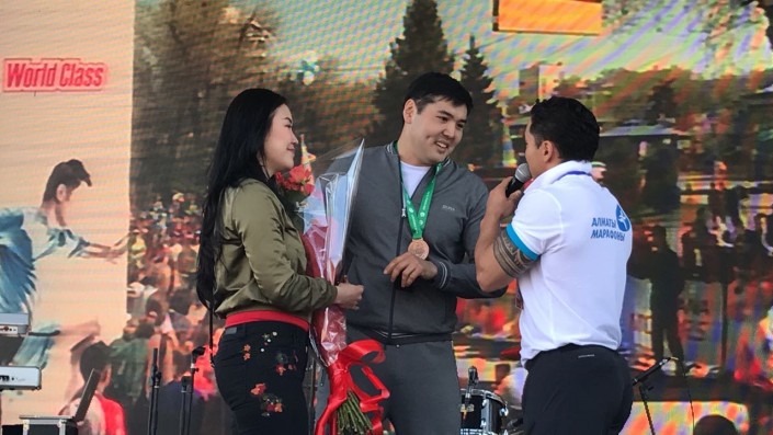 На "Алматы Марафоне" прозвучало предложение руки и сердца, сообщает корреспондент Tengrinews.kz.