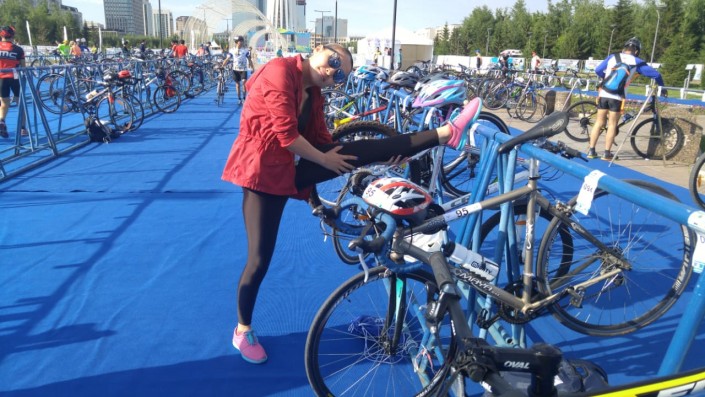 Девять часов утра, одна из главных улиц столицы возле "Байтерека" перекрыта. Через несколько минут здесь дадут старт турниру по дуатлону. Перед началом забега на разные дистанции участники разминаются и морально готовятся к началу соревнований.