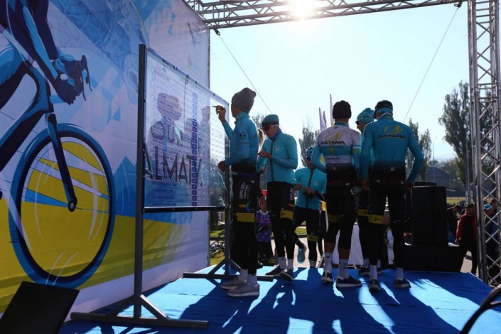 Гонщики стартовали у "Халык Арены". Далее будут круги ВОАД - Аль-Фараби (развороты на развязке Кульжинского тракта и на развязке Парка Первого Президента). Кульминация гонки - финальный спринт от Парка Первого Президента до высокогорного спортивного комплекса "Медеу" (по проспекту Достык).