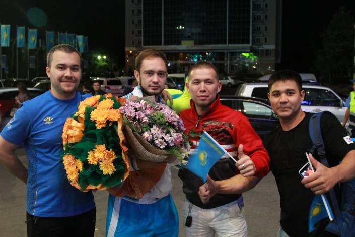 На улице спортсменов ждали болельщики. Подняв транспаранты и цветы, они скандировали имена казахстанских олимпийцев.