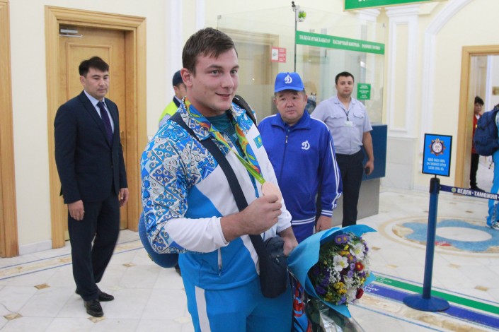 Ночью 18 августа в международный аэропорт Алматы авиарейсом KL405 прибыли два представителя Олимпийской сборной Казахстана по тяжелой атлетике - бронзовый медалист Рио Александр Зайчиков и занявший четвертое место Денис Уланов. Корреспондент Tengrinews.kz встречал спортсменов в аэропорту.