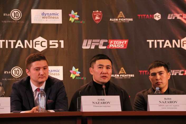 "Этот вечер для меня очень важен, потому что у меня есть шанс на 90 процентов попасть в UFC, если выиграю этот бой. С представителями Titan FC у нас хорошие отношения, и они убедились, что Казахстан - развивающаяся страна", - добавил двукратный чемпион по ММА Бейбит Назаров.
