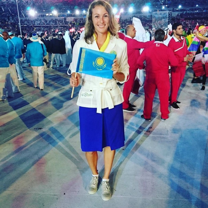 Первой вышла сборная Греции как страны, основавшей Олимпийские игры. Далее команды выходили в алфавитном порядке. Флаг Казахстана на церемонии нес таеквондист Руслан Жаппаров. Завершила парад на правах хозяев команда Бразилии.