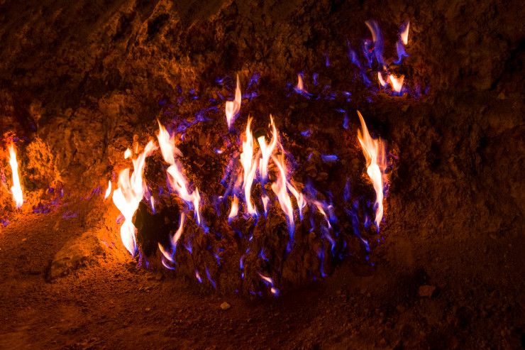 В 17 километрах к северу от Баку на Апшеронском полуострове находится знаменитая гора Янардаг. Название местности с азербайджанского переводится как "горящая гора". Газ здесь находится настолько близко к земле, что вырывается наружу и, попадая в атмосферу, начинает гореть. Говорят, что языки пламени невозможно потушить водой, снегом и ветрами. Венецианский исследователь Марко Поло писал о загадочных явлениях, когда проезжал через страну в XIII веке.