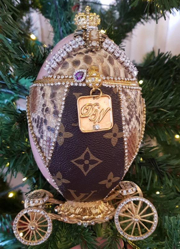 Почти месяц ушел на создание роскошных игрушек в форме яиц, шаров и сумочек с использованием кожи, меха норки, а также дорогих украшений от известных ювелирных домов Cartier, Chanel и Louis Vuitton.