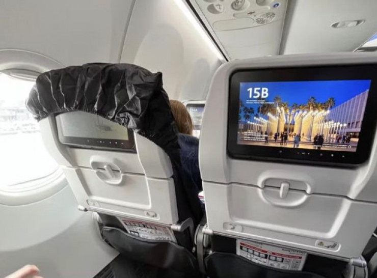 В Сети обсуждают фото, на котором пассажирка натянула черный пакет на сиденье в самолете и закрыла экран для сидящего позади соседа, передает Tengritravel.kz со ссылкой на DailyStar.co.uk.