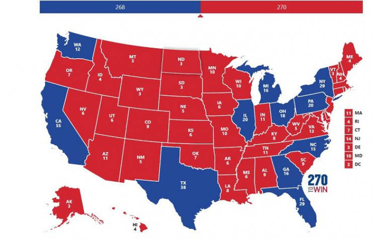 Отмечается, что если бы вы получили 50,1 процента голосов от каждого "красного" штата, а это 22 процента населения страны, то вы стали бы президентом. При этом даже если оставшиеся 78 процентов страны проголосовали бы за другого человека - это составило бы лишь 49,9 процента населения Соединенных Штатов. Дело в том, что в США президента выбирают так называемые выборщики от каждого штата, количество которых не совпадает с численностью населения. Таким образом, будущему лидеру надо "выиграть" штат, а не голоса избирателей.