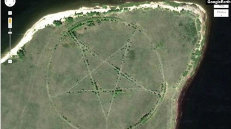 Пентаграмма в Казахстане - загадочное место, которое представляется слегка окрашенным отпечатком звезды внутри круга, слабо очерченного рядами деревьев. Эта большая форма расположена на южном берегу Верхнетобольского водохранилища. Ближайший населенный пункт - город Лисаковск в 20 километрах к востоку.