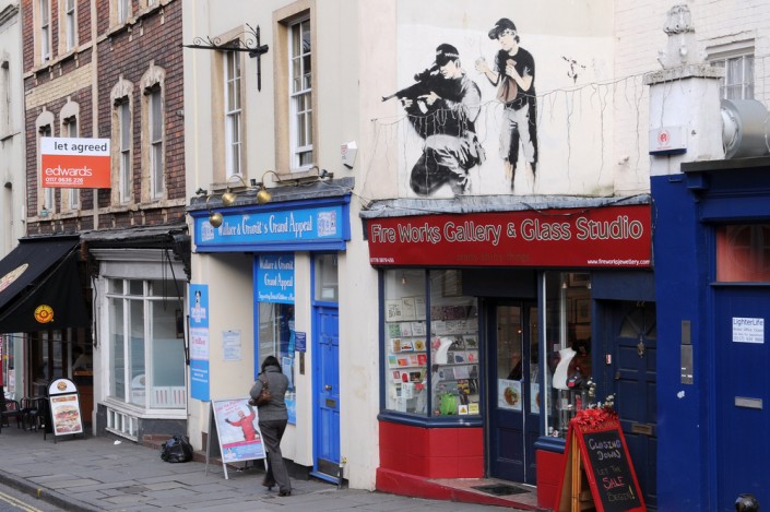 Бристоль, Великобритания. Бристоль - важный культурный центр Великобритании и родина того самого великого и загадочного Бэнкси – самого культового уличного художника современности. Благодаря таланту художника и остросоциальной тематике своих рисунков, Бэнкси быстро обрел популярность сначала в Англии, а затем и во всем мире. Самое удивительное, что он до сих пор сохраняет анонимность и скрывается от полиции. Трафаретные работы Бэнкси можно встретить по всему городу. Кстати, именно в этом городе каждый год проводится крупнейший фестиваль граффити Upfest. Жители Бристоля гордятся местными граффити и надеются, что рисунки будут сохраняться и в других городах Великобритании – в настоящее время они подлежат уничтожению, если только художник не получил предварительного разрешения на разрисовывание объекта.