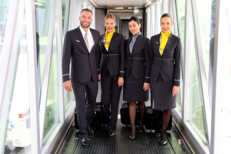 Минималистично, уютно и элегантно. Так можно описать униформу испанского лоукостера. Сочетание ярко-желтого и приглушенного серого выглядит актуально и не напыщенно, а серое пальто на запахе - носибельно, вызывает доверие пассажиров. Главное, компания учла пожелания сотрудников и создала униформу, на которую не только приятно смотреть, но и комфортно носить.