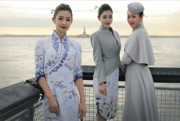 Новая форма этой китайской авиалинии была представлена на Неделе высокой моды в Париже. Дизайнер Лоренц Сю представил отсылающие к небу серо-голубые оттенки и внес традиционные элементы. В итоге получилась женственная коллекция с национальным колоритом.