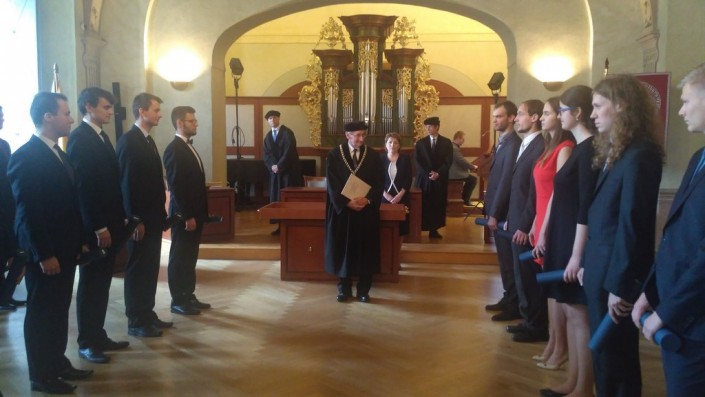 Я себе не раз представляла эту церемонию, но когда в реальности видишь, как под звуки органа твой сын в числе других молодых людей торжественно входит в зал, а профессор в старинной мантии произносит традиционное приветствие на латыни и затем вручает тубусы с дипломами, то невольно ловишь себя на мысли: а ведь это происходит на самом деле. И этот высокий парень в строгом костюме, который когда-то разрисовывал стены в квартире, дарил тебе маленькие букетики из одуванчиков и клевера, собранные во дворе дома, рассказывал свои придуманные сказки про салями и кусочек сыра, готовил свои первые супчики, встав у плиты на стул, проделал весь этот путь самостоятельно, много трудился и получил такой превосходный результат. Илья, мы гордимся тобой!