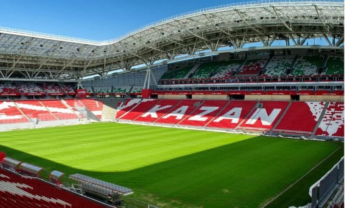 Центром притяжения футбольных болельщиков в городе станет "Казань-Арена" - универсальный футбольный стадион наивысшей, четвертой категории УЕФА. Это один из самых вместительных стадионов России. Его площадь составляет почти 136 тысяч квадратных метров. Стадион может принять одновременно 45 тысяч человек. Помимо сложных и необычных архитектурных решений, "Казань-Арена" имеет одну отличительную особенность - самый большой в мире медиафасад - 3,7 тысячи квадратных метров. Во время чемпионата на фасаде будут вестись онлайн-трансляции матчей в HD-качестве, поэтому видно будет всем без исключения.
