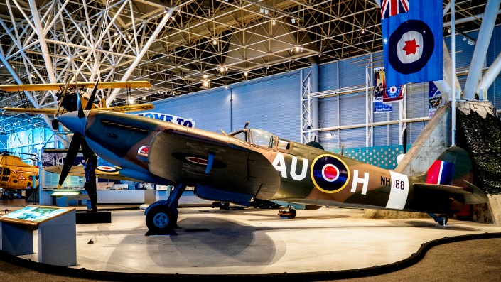 В этом музее собраны экспонаты из Национального авиационного музея в Аплэндс с коллекцией ранней авиации, Канадского военного музея с коллекцией военных летательных аппаратов и техники, и музея Королевских ВВС Канады, где представлены наиболее современные модели. Здесь можно увидеть коллекцию из 130 самолетов со всего мира. Самым известным экспонатом обширной коллекции является "Авро Эрроу", перехватчик конца 1950-х годов. Кроме того, здесь можно увидеть "Канадарм 201", роботизированную платформу управления космического шаттла "Индевор".