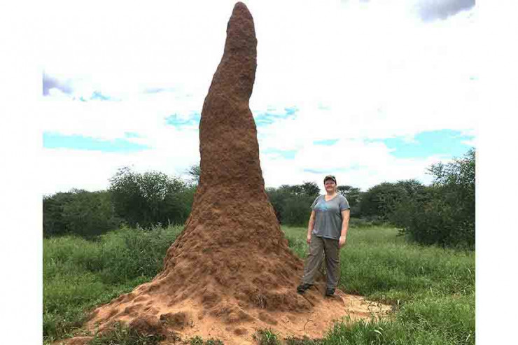 Ученая Андреа Суровек возле термитника. Фото с сайта www.sdsmt.edu