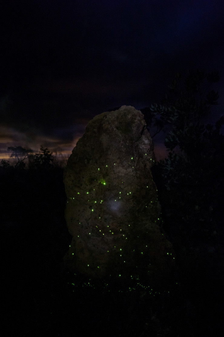 Пожалуй, самые красочные термитники из этой подборки находятся в центральной Бразилии, в саванне Серраду, признанной одной из самых биологически разнообразных на планете. Именно здесь в сезон дождей с апреля по октябрь можно наблюдать за уникальным природным явлением - светящимися термитниками.