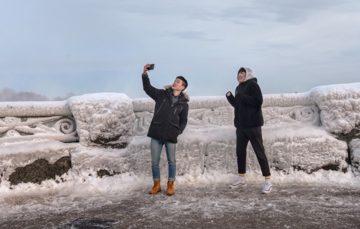 Как сообщает CNN, один из самых больших водопадов мира, многие годы привлекающий в Северную Америку туристов, почти полностью замерз. Образовавшиеся в разных местах огромные глыбы льда напоминают сталактиты и причудливые геометрические формы. На северо-востоке США в эти дни установились нехарактерные для этого региона холода. Сам водный поток продолжает течение, однако водяная пыль замерзает еще в воздухе, покрывает окружающие камни и все окрестности. Необычное явление привлекает в штат Нью-Йорк и канадскую провинцию Онтарио множество туристов, которые активно делятся фотографиями в соцсетях.