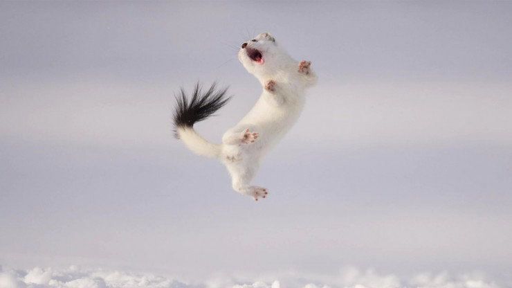 "Ученые часто наблюдали подобные танцы горностаев. Однако, чем обоснованы подобные прыжки, они пока не выяснили. Мнения специалистов разнятся. Иногда горностаи скачут перед кроликом или крупной птицей, явно пытаясь сбить тех с толку или отвлечь потенциальную добычу.