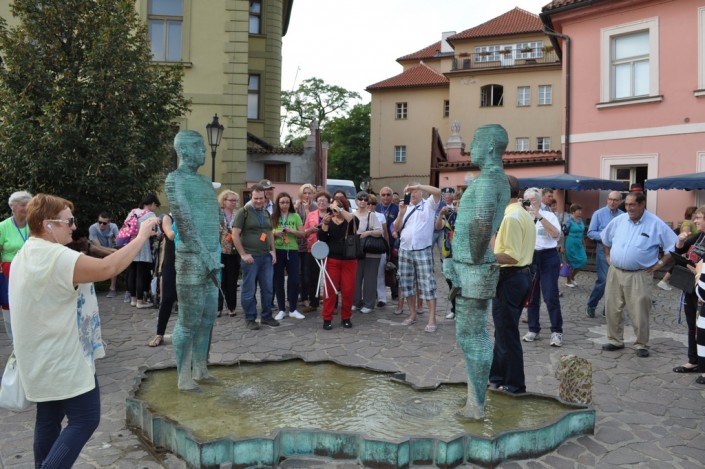 Отсюда же недалеко до музея Франца Кафки. Перед входом в музей установлена скандальная скульптура Давида Черны "Писающие мужчины". Скульптор прославился множеством подобных арт-объектов. Первая его работа - это танк, выкрашенный в розовый цвет, который он отправил на плоту по Влтаве. За эту шалость Давиду Черны выписали огромный штраф и арестовали на 14 суток. Он также создал памятник Подхалимству, вращающуюся голову Франца Кафки, автобус на руках в Лондоне, голову, плюющую в океан, в Нью-Йорке и многие другие.