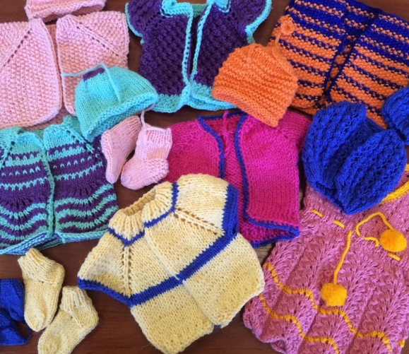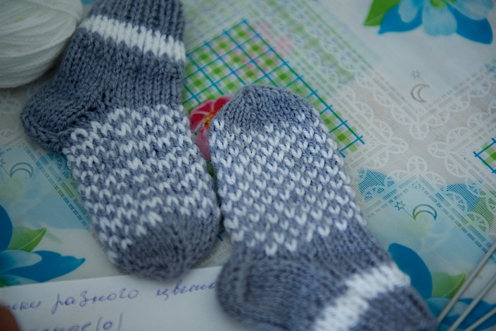 В центр принесли вязаные вещи для малышей, родившихся весом в 500-800 граммов. Таких новорожденных выхаживают в отделении неонатологии. Кроме медицинской помощи и соблюдения температуры в кювезе, куда помещают недоношенных детей, им необходимы шерстяные вещи. Вязаные носочки, шапочки и кофты помогают крохам в буквальном смысле выжить.