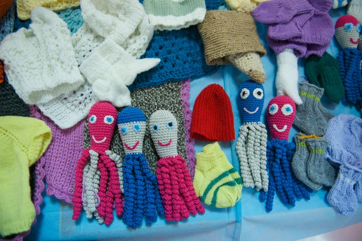 Сегодня в Центр материнства и детства пришли мамы малышей, родившихся раньше срока с минимальным весом, которым когда-то очень пригодились вязаные вещи. Фото Карлы Нур©