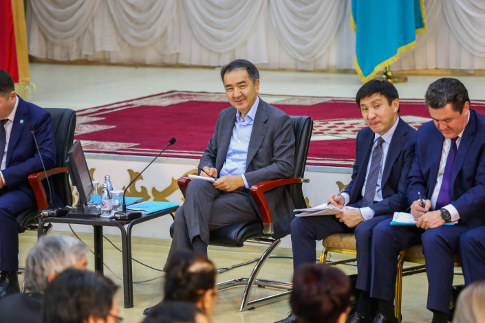 Это вторая встреча акима Бакытжана Сагинтаева с жителями этого района, первая была три месяца назад. Как позже скажет аким, сегодняшнее мероприятие - своего рода отчет о проделанной работе.