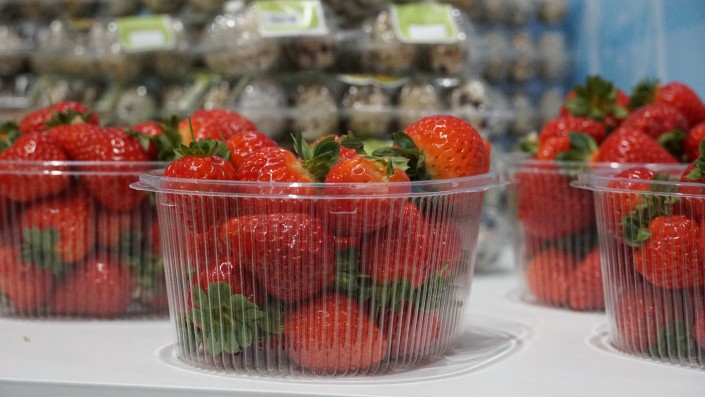 "Активно развиваются и нетрадиционные отрасли сельского хозяйства. Насчитывается 260 различных проектов, в текущем году реализуется 75 проектов на сумму 2,5 миллиарда тенге… Компания "Эко ферма 2015" применяет передовой опыт выращивания клубники. (…) Крупнейшая в Казахстане малиновая плантация продолжает расширятся. Сегодня на площадке 45 гектаров ежегодно собирают 150 тонн ягод", - объявлял голос с экрана.