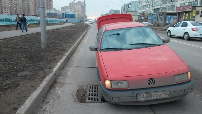 Эта ловушка находится на улице Шакарима Кудайбердыулы в районе поликлиники №7.