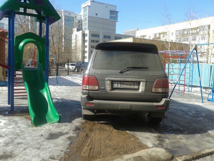 Житель Астаны прислал нам очень показательные снимки припаркованных внедорожников на детских площадках в столичных дворах.