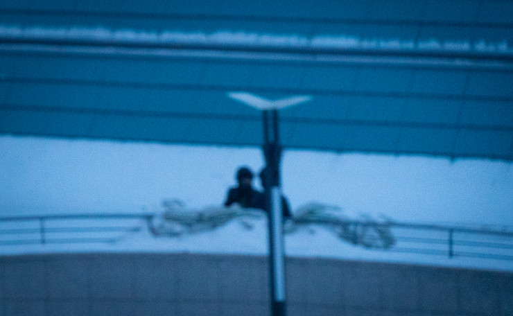 Укрытия из мешков можно заметить и вдоль пешеходного моста, ведущего в парламент. В мирное время на этом самом мосту можно встретить идущих на работу или с работы депутатов.