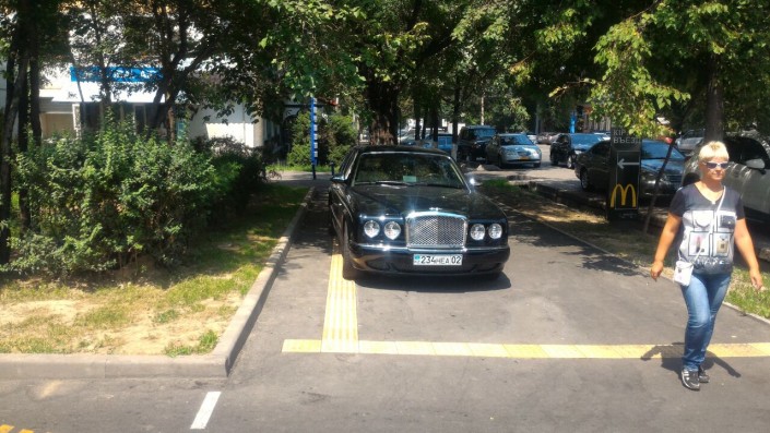 Начнем с Алматы. В этом городе роскошные авто встречаются нередко да и в самых разных местах. Так, в редакцию прислали фото Bentley, припаркованного близ недавно открывшегося Mcdonalds прямо на тротуаре да еще и на дорожке для слабовидящих. Фото было сделано в июле.