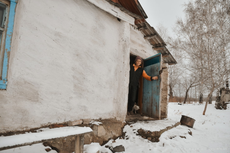 Не заметив людей на улице, стучимся в дверь первого попавшегося дома. На улицу выглядывает местная жительница, представившаяся как Ботагоз. Она рассказала, что переехала сюда 20 лет назад из другого поселка.